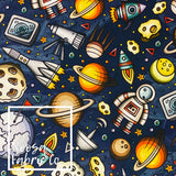 Our Apollo Digital Print Fabric is perfect for any child that loves outer space! Whether you are encouraging your little one to reach for the stars or just fostering their love of the planets around us, your imagination is the limit with this galactic print. Our Apollo space galaxy fabric is amazingly soft, has a tight weave, and is both durable and easy wearing. Perfect for your little astronaut!